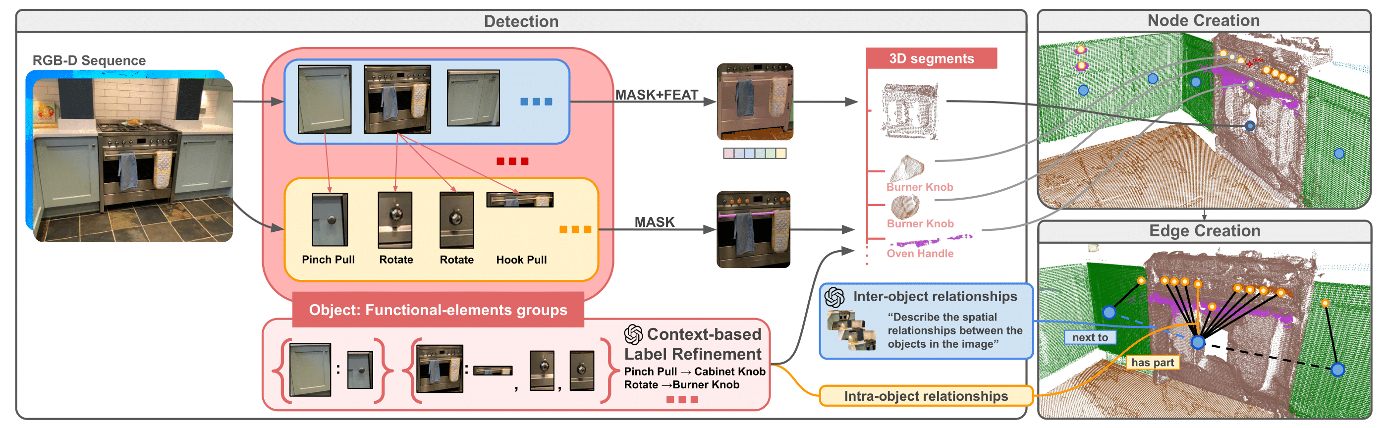 Current approaches often address this at a coarse, object-level resolution. In contrast, our goal is to develop a representation that enables robots to directly interact with their environment by identifying both the location of functional interactive elements and how these can be used. To achieve this, we focus on detecting and storing objects at a finer resolution, focusing on affordance-relevant parts.